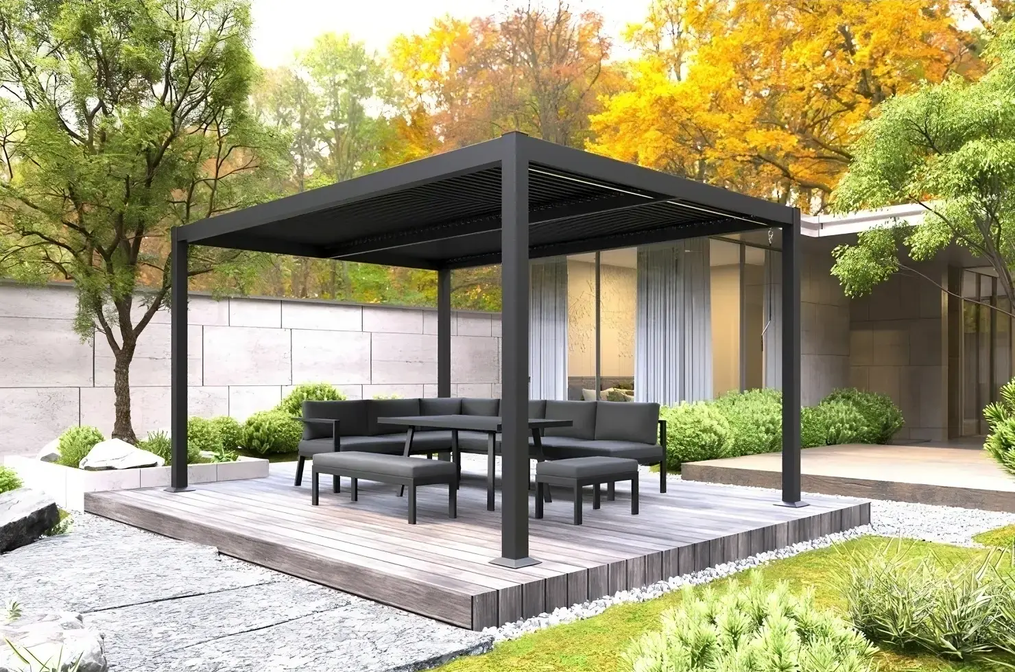 - Regulowane lamele dachowe – dopasuj cień i przewiew do pogody